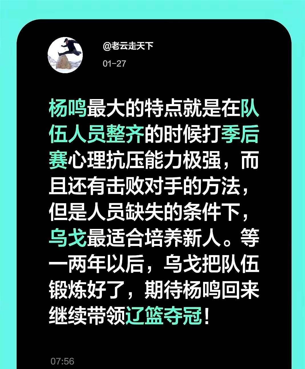 任何洋帅在CBA都缺乏足够的掌控力,乌戈并非例外,群龙无首导致各自为战,缺乏威信导致主教练理念遇阻,球队氛围发生了微妙变化。 正是这接连的失利和艰涩的比赛,让乌戈知难而退,主动请辞。 而颇具格局的是,正是乌戈第一个希望请回杨鸣。 不清楚乌戈如果继续执教能否率队夺冠,但事实是,杨鸣回归后做到了,辽宁队赛季中期的这次临阵换帅,接受了乌戈的建议,重新信任杨鸣,成为了那个赛季成功的点睛之笔。