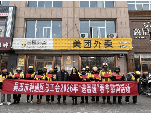 新春将至,利通区“小个专”及网约配送行业综合党委联合利通区总工会开展春节慰问活动,为坚守岗位的外卖配送员送上暖心关怀。慰问组详细询问骑手们的工作与生活情况,认真倾听大家的心声与需求,感谢骑手们顶风冒雪、穿梭街巷,用汗水守护城市烟火气,并叮嘱大家注意出行安全、劳逸结合。此次慰问采取灵活便捷的发放形式,让骑手可以根据实际需求自主选择,既实用又贴心。一位美团骑手表示:“收到这份关怀,心里热乎乎的,跑单更有劲儿了!”